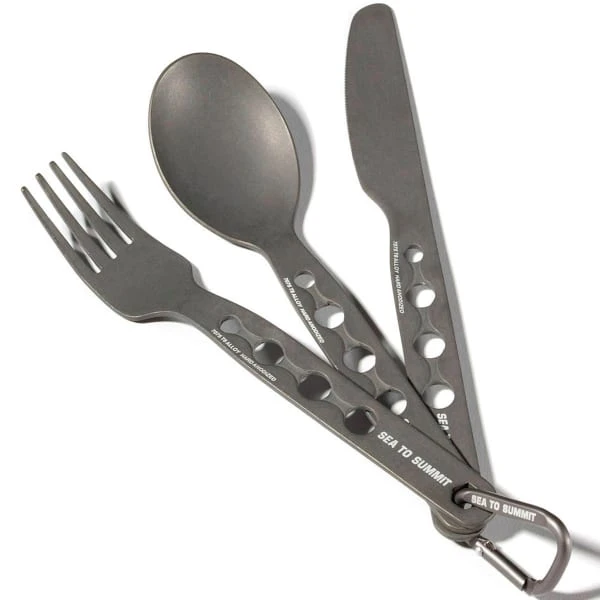 De ULTRA LIGHT ALPHA SET van Sea To SUMMIT is een bestekset bestaande uit een vork, een lepel en een mes, die zeer geschikt is voor avonturiers die licht moeten reizen.